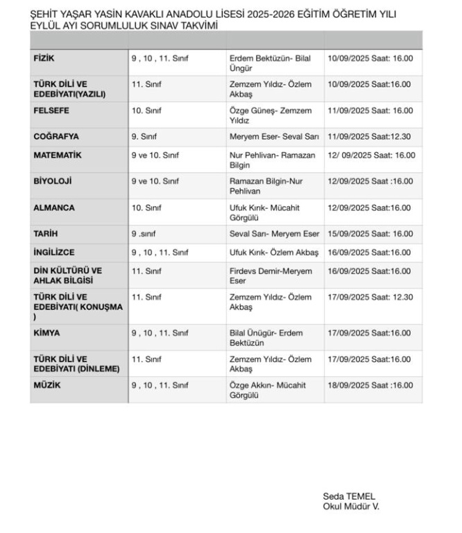 2024-2025 Haziran ayı sorumluluk sınav takvimi yayındadır.
